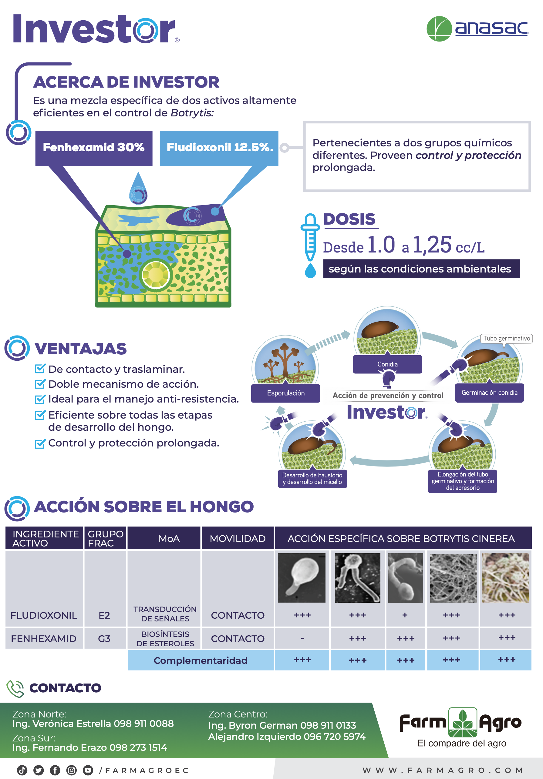 MECANISMO DE ACCIÓN: Fenhexamid: Inhibidor de la síntesis del ergosterol. Actúa en el hongo patógeno durante la penetración y formación de haustorios. Detiene el desarrollo del hongo interfiriendo con la biosíntesis de las membranas celulares y germinación de la espora. Fludioxonil: Señales de transducción. Es un fenilpirrol y actúa haciendo inhibición de una proteína quinasa mitogeno activada (MAP) involucrada en la mta de transducción de la señal osmo- regulatoria (síntesis del glicerol)